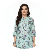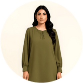 Elevate your wardrobe with this statement two-piece ensemble crafted from premium textured crepe. The pistachio-teal tunic features a structured high collar and an asymmetrical draped hem that creates a graceful, flowy silhouette. Wide, turned-up cuffs add a contemporary edge, perfectly balancing sophistication with effortless...- Rs.3,999.00