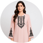 Effortlessly chic and timeless, this blush pink co-ord set is designed for women who love understated elegance. Crafted from a premium textured fabric with a graceful fall, the ensemble features a relaxed long top with a straight silhouette, side slits, and a band collar neckline....- Rs.3,399.00