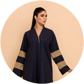 Effortless Style. Modern Fit. Embrace sophisticated simplicity with our tailored Kameez and Trouser Suit. This essential two-piece ensemble features a clean, straight-cut kameez and matching wide-leg trousers for a modern, graceful silhouette. The collarless V-neck and discreet button placket add a refined touch, making...- Rs.3,099.00