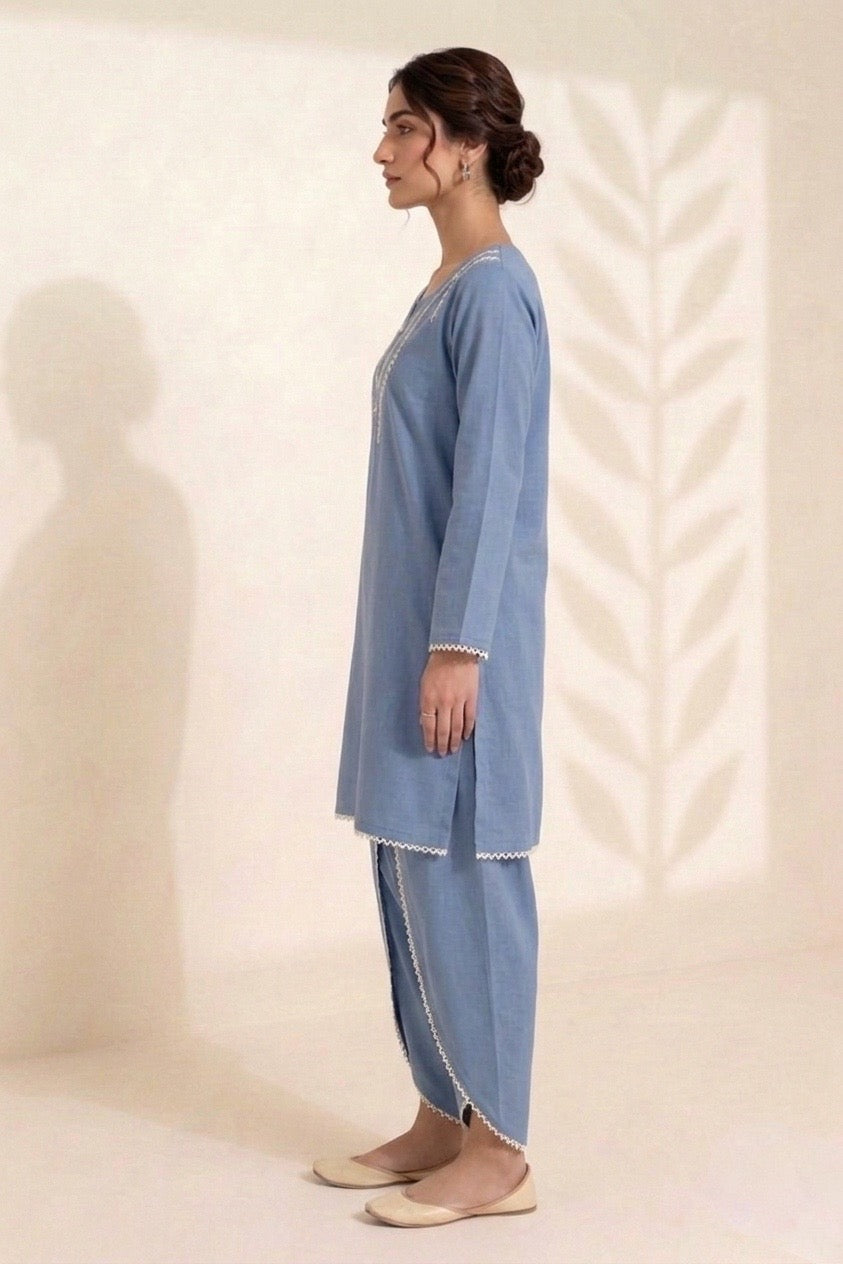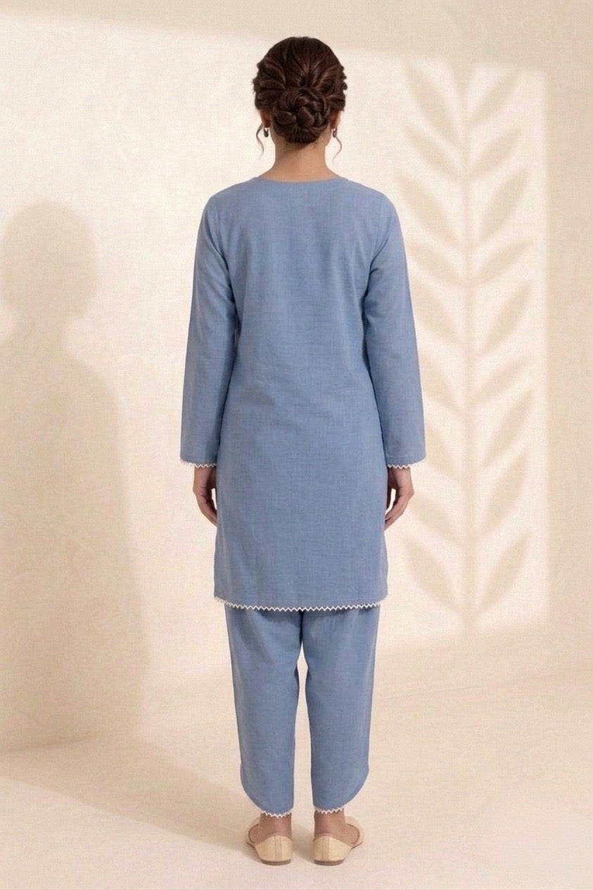 Elevate your everyday wardrobe with this effortlessly elegant cotton lawn outfit. Designed for comfort and understated sophistication, the shirt features delicate embroidered detailing along the neckline that adds a refined traditional touch. The breathable light cotton lawn fabric ensures all-day comfort, making it perfect for casual wear, summer outings, or relaxed gatherings.