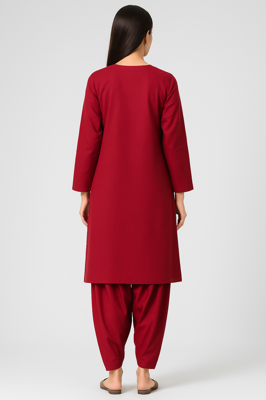 Elevate your everyday style with this elegant soft pink shalwar kameez, tailored in breathable cotton fabric. Designed with a straight-cut kurta featuring a clean neckline and long sleeves, paired with a traditional shalwar for timeless comfort.
