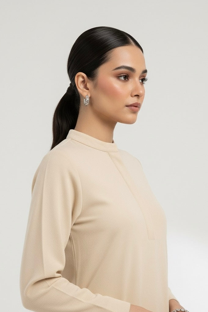 Elevate your everyday style with this classic cream co-ord set crafted from luxurious marina wool. The kurta features a clean band collar, front placket, and side slits for ease, paired with relaxed straight trousers for a timeless silhouette. The fabric’s natural warmth and smooth drape make it perfect for effortless winter dressing — equally refined for work, casual outings, or semi-formal occasions.