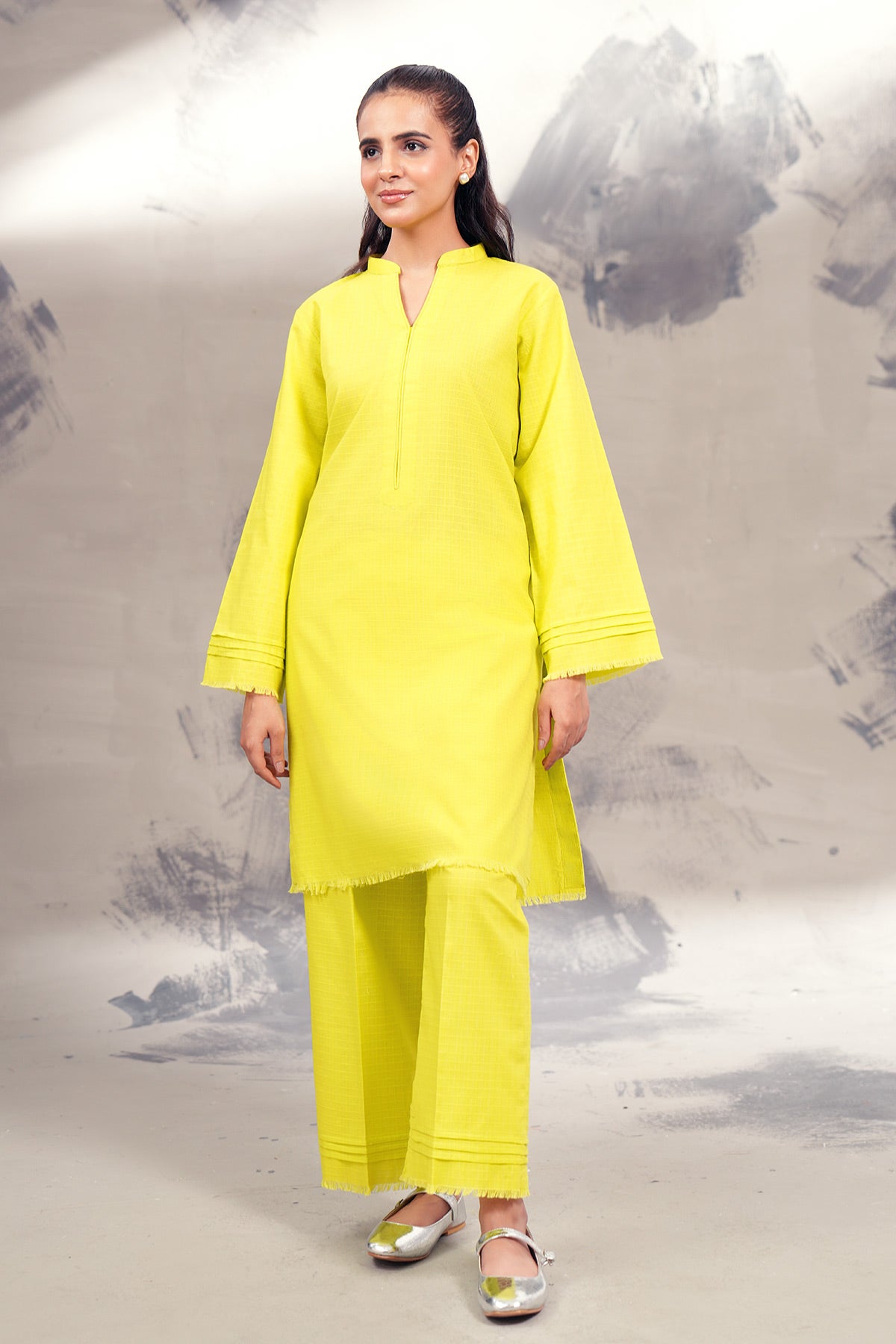 Stay warm with our self-lawn summer coord set, stylish deep v-neckline neckstyle, and Plazo Pants.