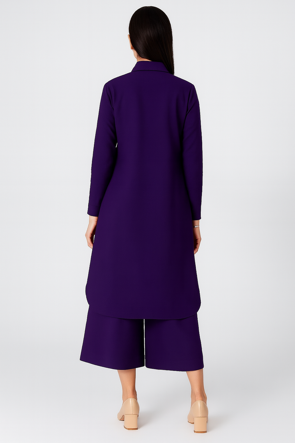 Elevate your everyday look with this timeless collared long shirt and culotte set crafted in a rich burgundy hue. Designed for effortless elegance, the outfit combines clean tailoring with versatile comfort.