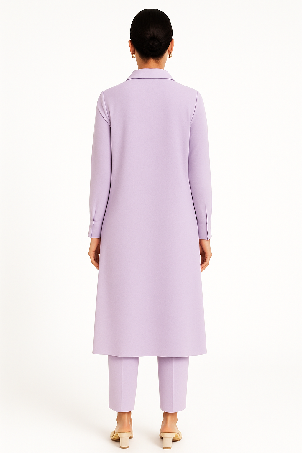 Elevate your everyday elegance with this timeless two-piece set in rich dark purple. Designed for graceful simplicity and comfort, the long shirt features a refined collar neckline and straight cut for a flattering silhouette. Paired with sleek tapered trousers, this ensemble is perfect for formal gatherings, office wear, or chic everyday style.