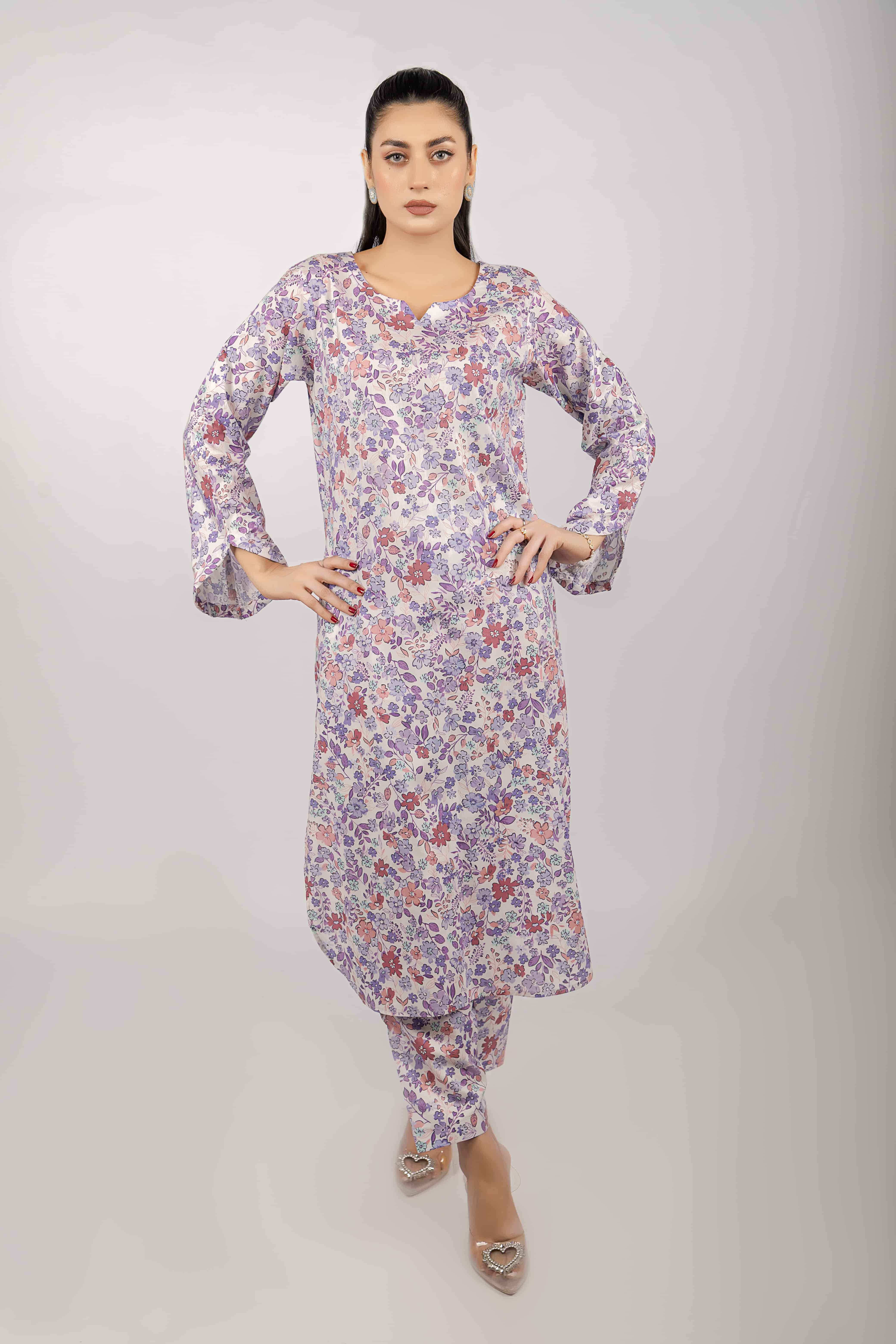 Printed Front Panel, Printed Back Panel, Round With A Slit Neckline, Full Sleeves, Printed Straight Fit trouser