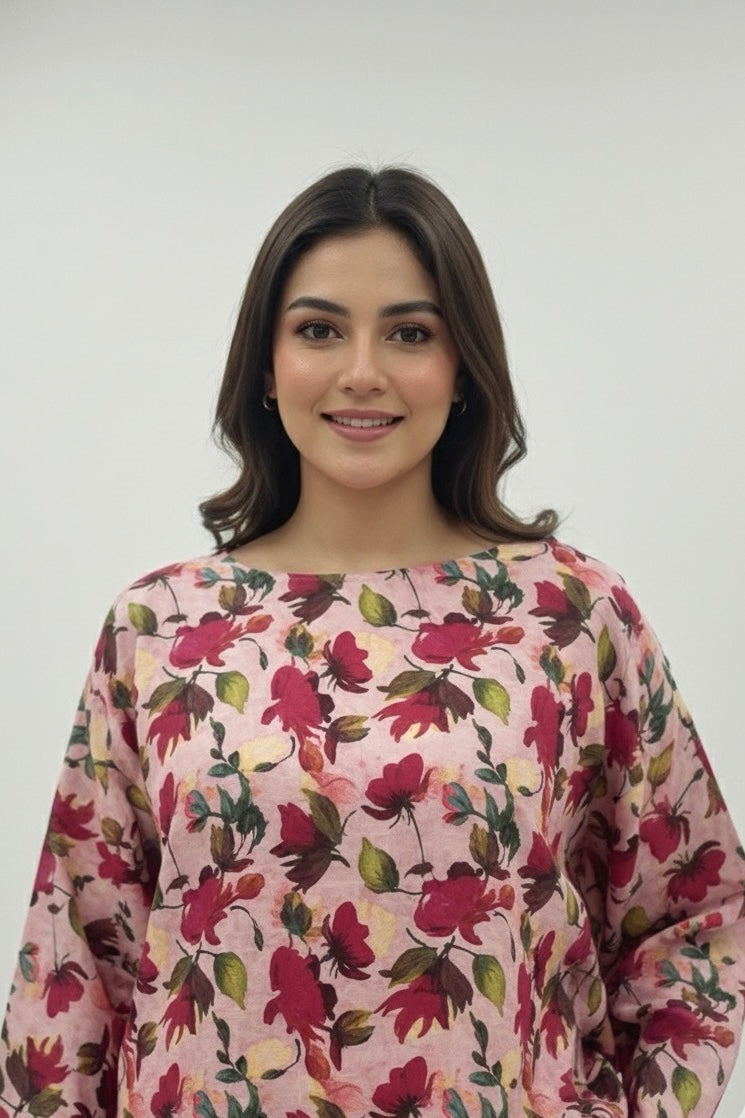 A graceful fusion of comfort and charm — this self-weave linen co-ord set brings timeless elegance to everyday wear. The soft blush pink base is adorned with bold magenta and green floral patterns, creating a fresh and feminine look. Crafted from premium self-weave linen, the fabric offers a breathable yet structured drape perfect for both casual outings and relaxed gatherings.