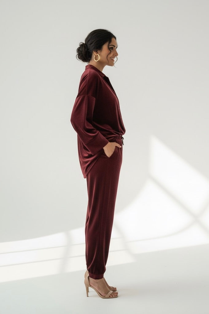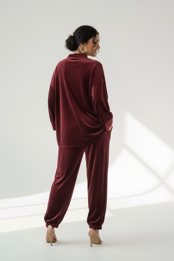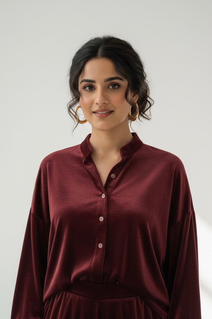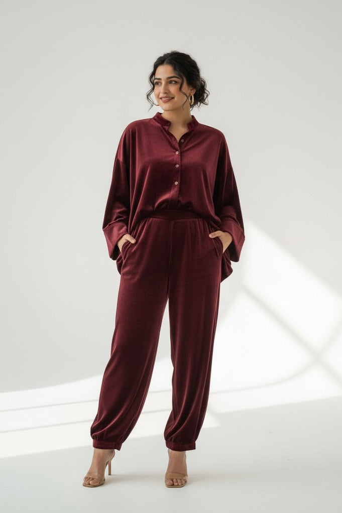 Indulge in sophisticated comfort with our premium Velvet Relaxed Coord Set. Crafted from sumptuously soft velvet, this two-piece ensemble features a relaxed-fit shirt and matching pants, designed for effortless elegance whether you're lounging or stepping out.