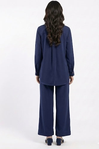 Effortless style meets everyday comfort in this chic navy co-ord set. Designed with a relaxed silhouette, the button-down shirt pairs perfectly with wide-leg trousers for a polished yet easygoing look you’ll love wearing on repeat.