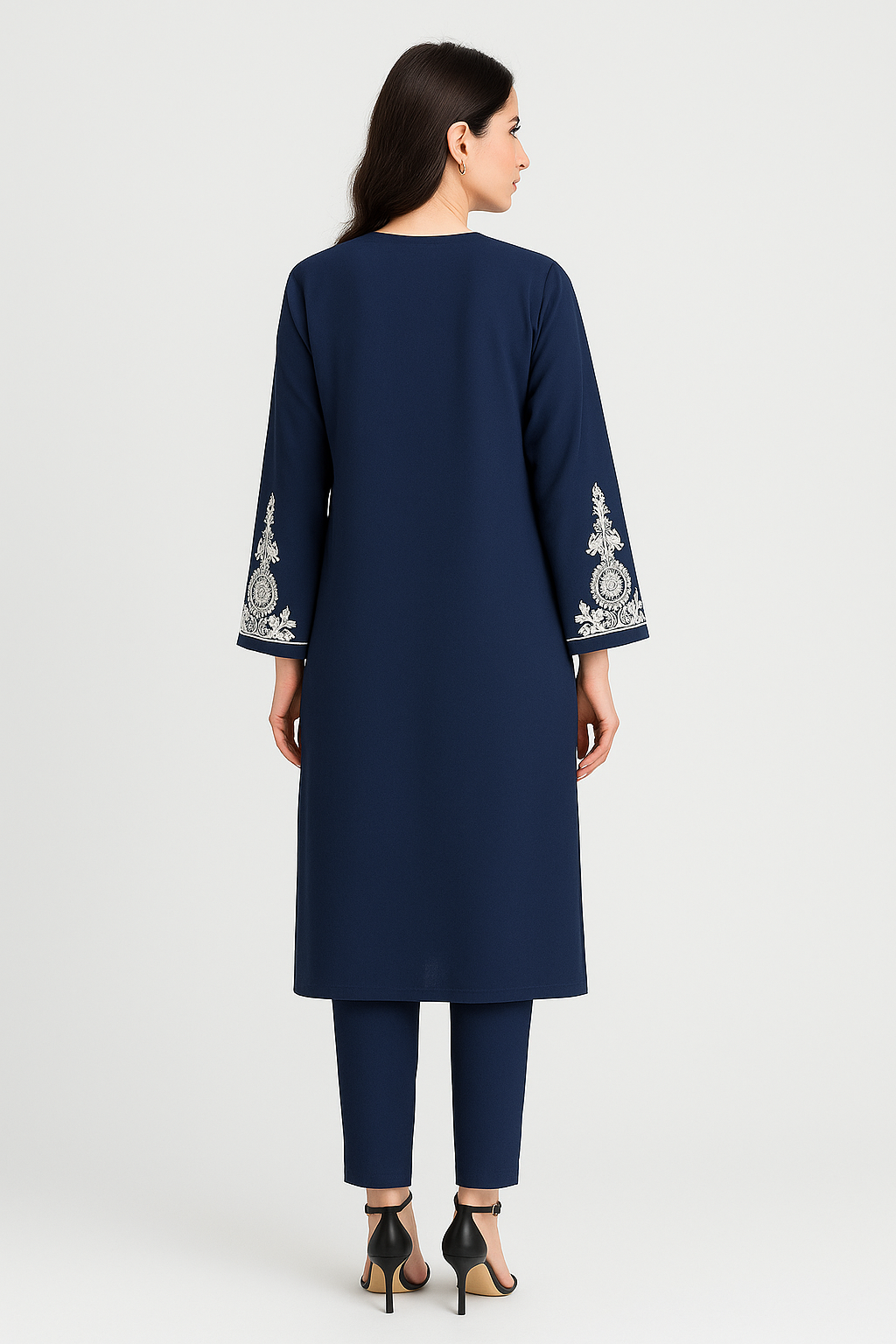Perfect for both daytime elegance and evening sophistication, this outfit blends modern chic with traditional craftsmanship. Pair with heels or flats for versatile styling.