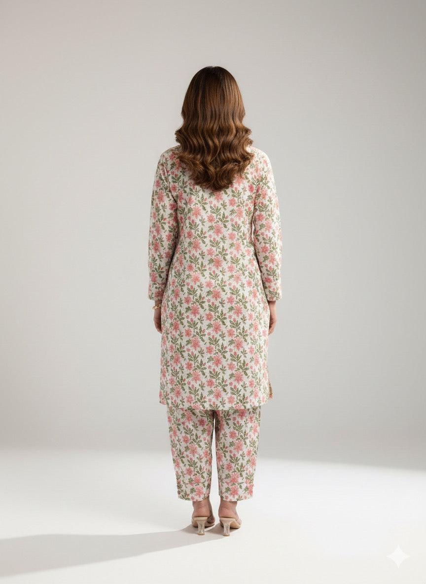 A timeless two-piece ensemble crafted from soft, breathable printed lawn. Featuring a straight-cut shirt with a delicate floral print and a neat front placket, paired with relaxed matching trousers for effortless daywear elegance.