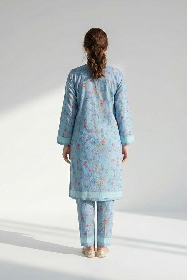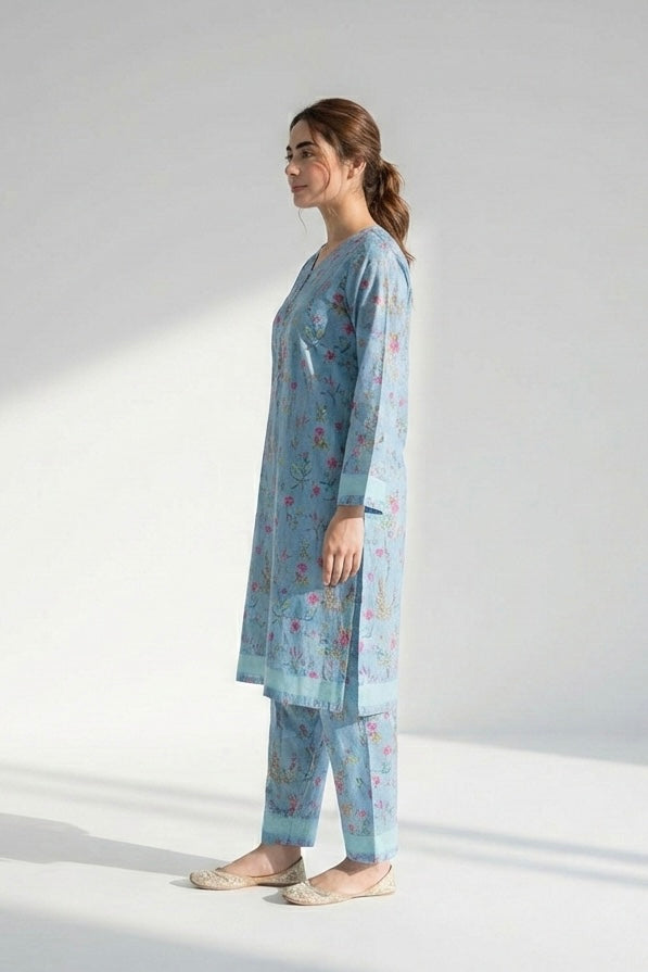 Refresh your summer wardrobe with this elegant sky blue floral lawn outfit, designed for effortless everyday sophistication. Crafted from breathable premium lawn, this two-piece set features a soft pastel base adorned with delicate floral prints in pink and green hues — perfect for daytime gatherings, casual outings, or work wear.