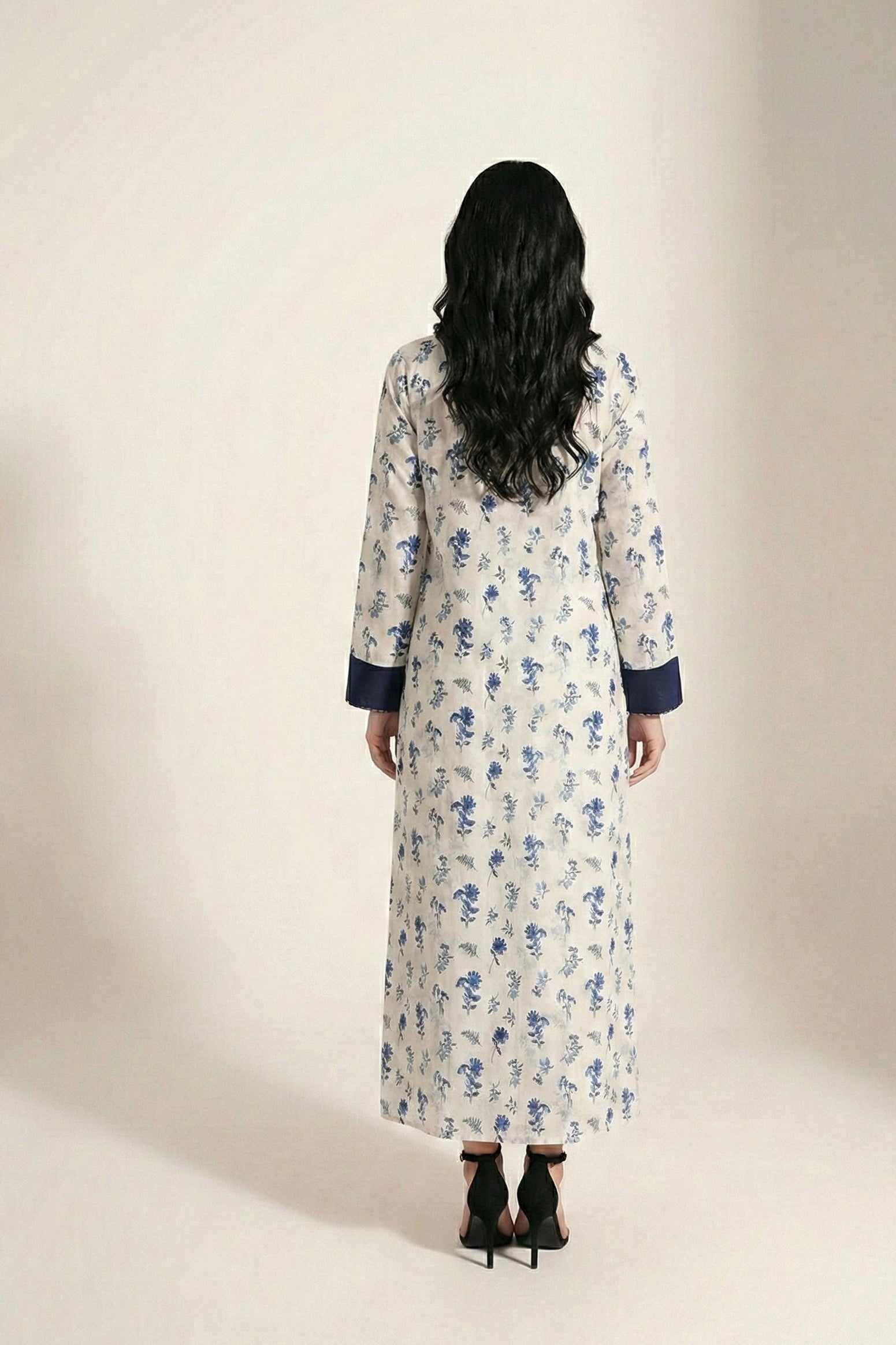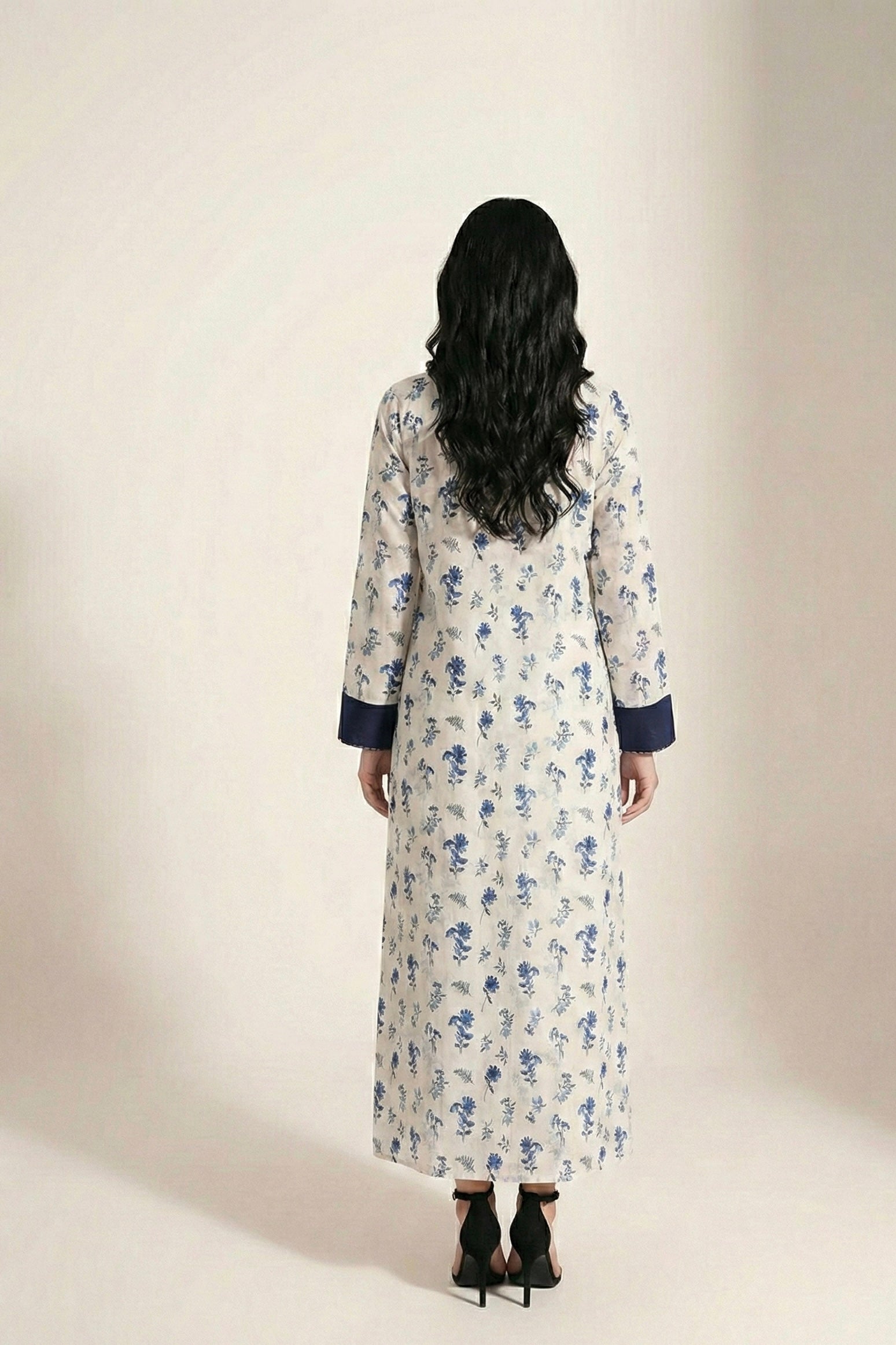 A statement everyday essential designed with effortless grace and modern modesty. This long lawn shirt features a vibrant orange base adorned with delicate black floral motifs, beautifully balanced with a sleek black front panel and sleeve cuffs for a refined contrast. The straight silhouette and relaxed fall make it perfect for both casual daywear and semi-formal styling.