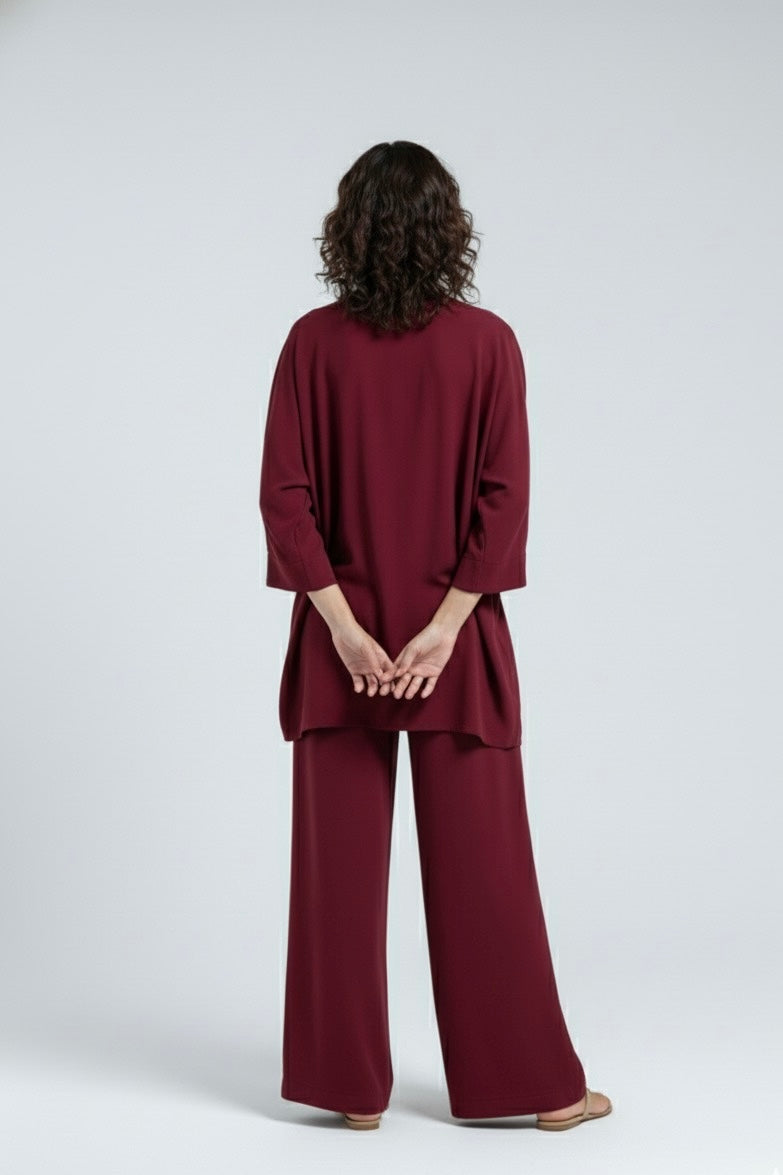 Effortless style meets all-day comfort in this chic white co-ord set. Crafted from premium blend fabric, the ensemble features a relaxed-fit top with a sleek V-neckline and wide sleeves for a breezy, modern look. Paired with flowy wide-leg trousers, it offers both versatility and elegance – perfect for casual outings, workdays, or travel.