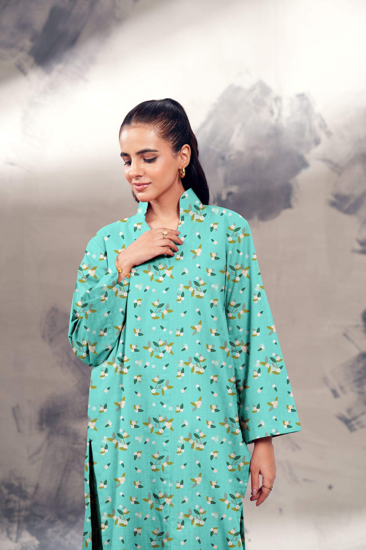 Elevate your style with our sea blue floral khaddar 2 PC with elegant design.