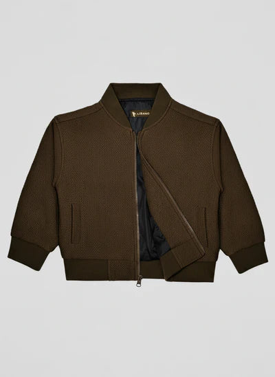 This bomber jacket feels comforting and soft, like a gentle hug for your little one. The textured fabric adds a playful touch, making it a favorite for everyday wear, whether it’s a school day or a family visit.