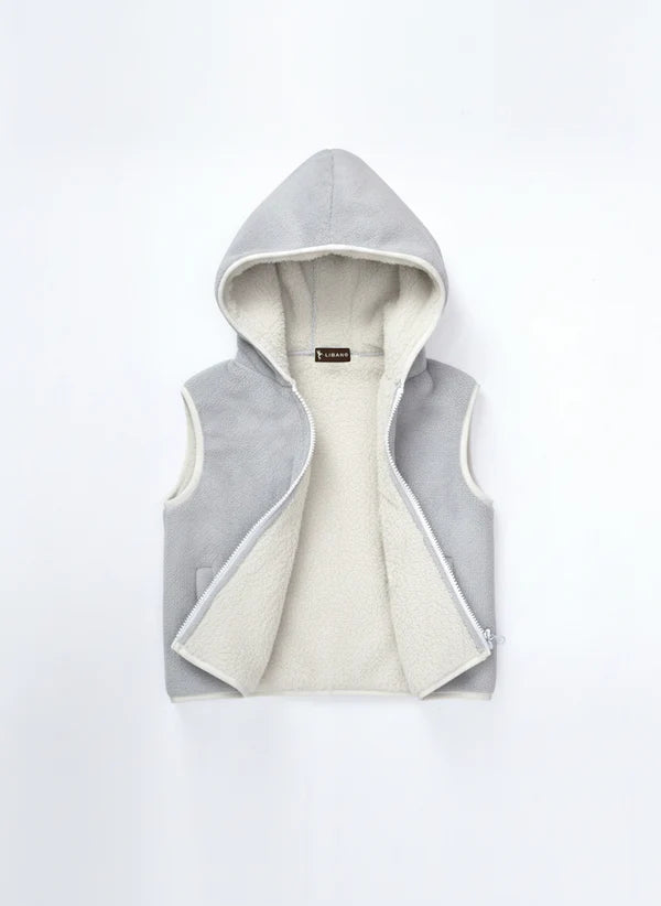 Hooded Sherpa Gilet - Light Grey