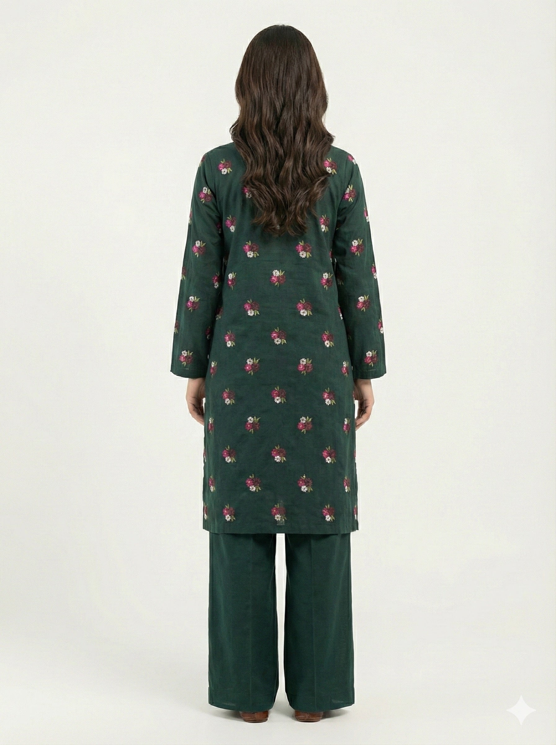 A timeless everyday essential, this green kurta set is designed with subtle floral embroidery for an effortlessly refined look. The straight-cut kurta features a minimal round neckline with a slit detail, offering comfort and elegance in equal measure. Paired with relaxed straight trousers, this set is ideal for both casual wear and understated day occasions.
