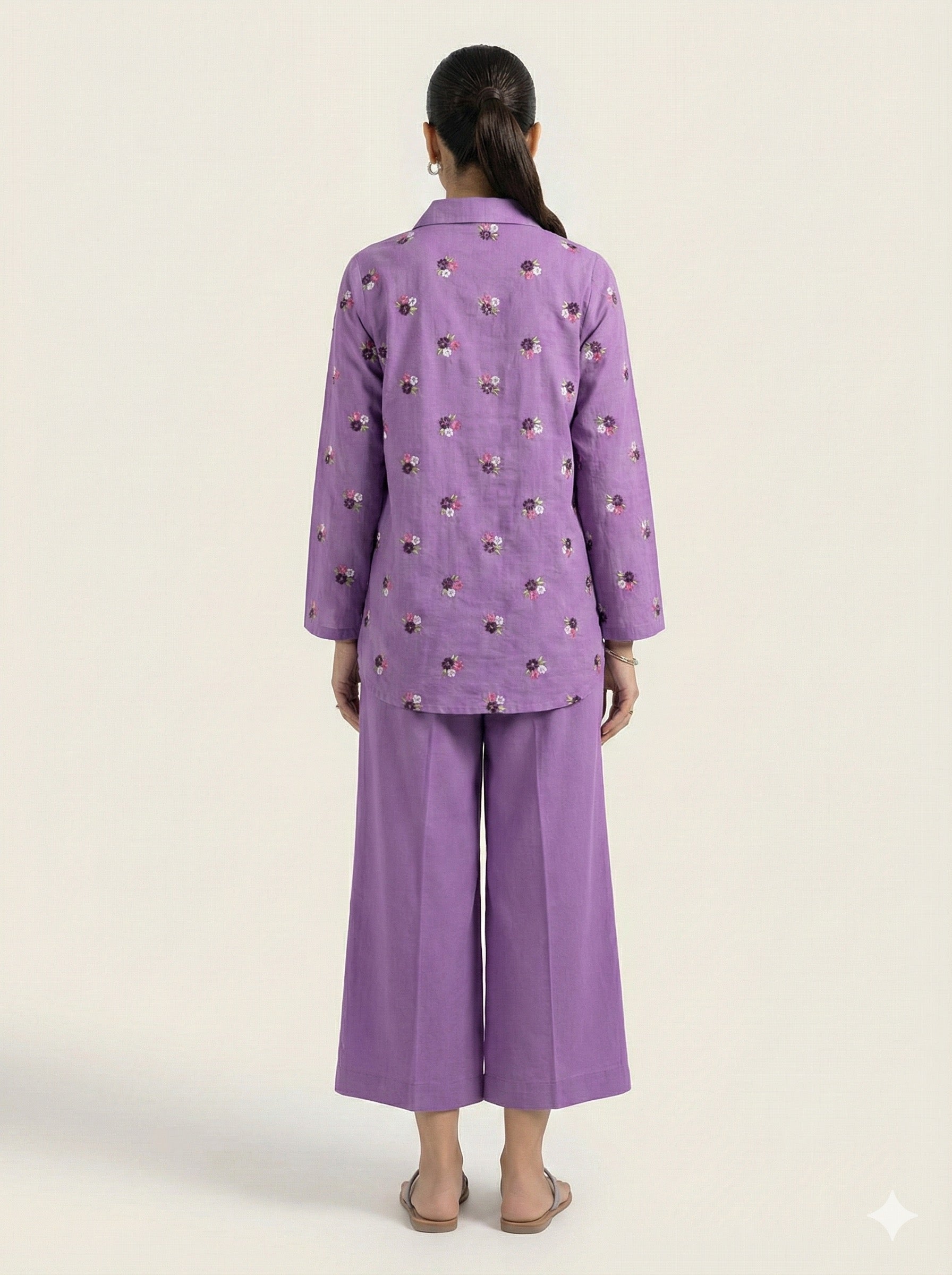 A refined everyday coord set designed for effortless style and comfort. Crafted in breathable cotton fabric, this two-piece outfit features a relaxed printed shirt paired with wide-leg trousers, making it perfect for both casual wear and understated outings.