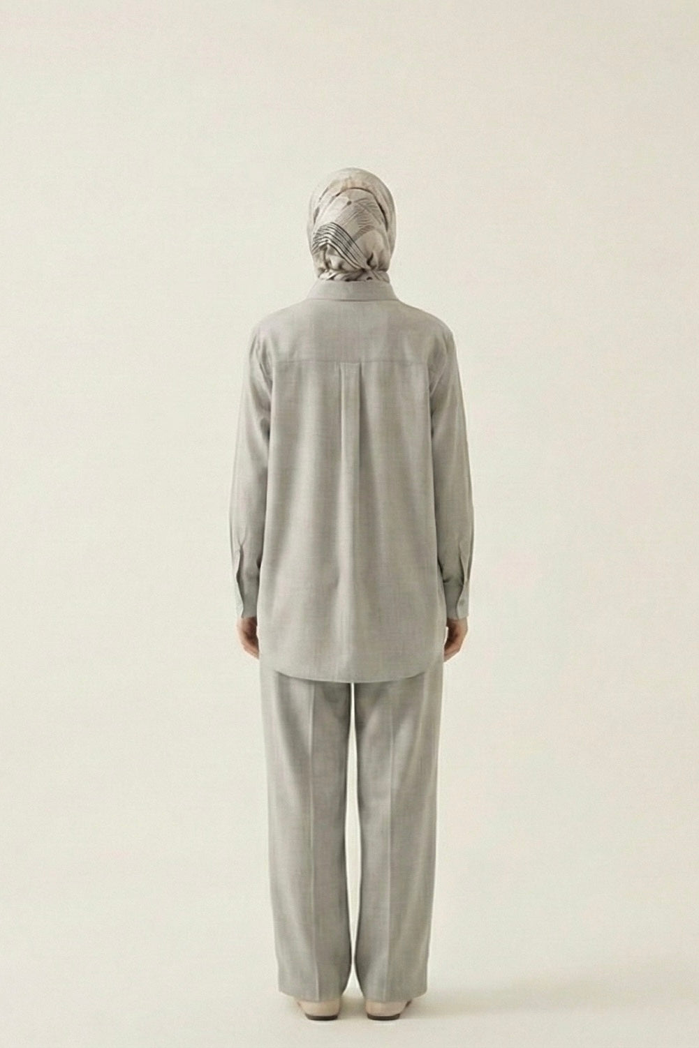 This understated two-piece co-ord set is designed for effortless everyday wear with a refined silhouette. The set features a straight-cut button-down shirt paired with relaxed wide-leg trousers, offering comfort without compromising on structure.